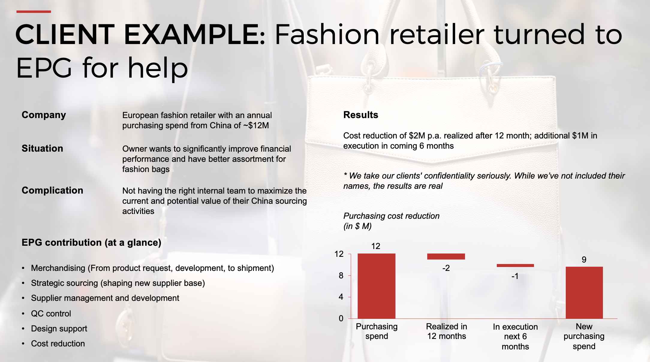 EPG stands for high performance, built on innovation, dedicated people, and long experience. With more than ten years of procurement outsourcing industry experience, EPG is one of the best providers of procurement outsourcing services in China. Our services, knowledge and methodology will guarantee you sustained spend savings, more favorable contracts, better compliance, and improved speed to value.