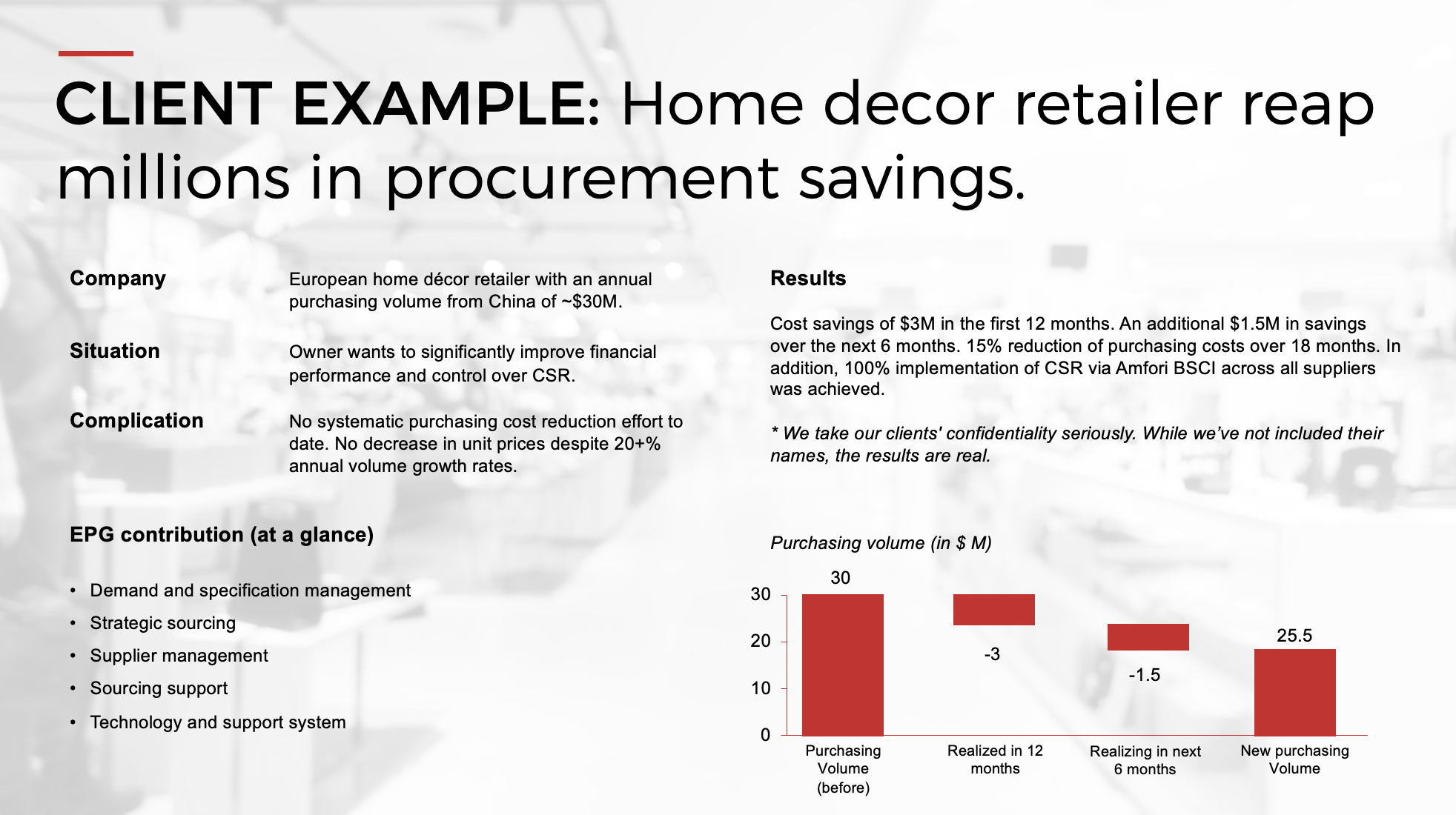 EPG stands for high performance, built on innovation, dedicated people, and long experience. With more than ten years of procurement outsourcing industry experience, EPG is one of the best providers of procurement outsourcing services in China. Our services, knowledge and methodology will guarantee you sustained spend savings, better compliance, and improved speed to value.