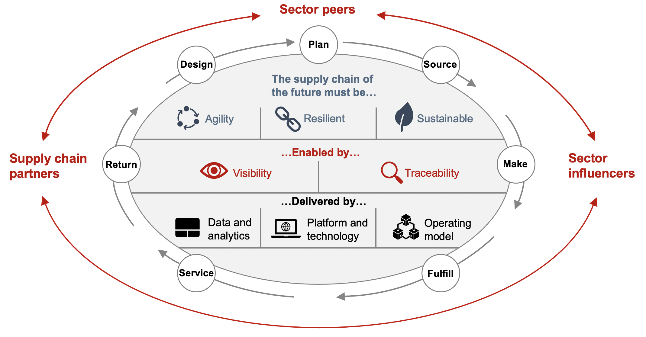 Agility, resilient, and sustainable supply chains offer a competitive advantage, but they require that companies have clear visibility throughout the chain and the ability to trace both inputs and outputs, delivered by right data, technology and operating model.